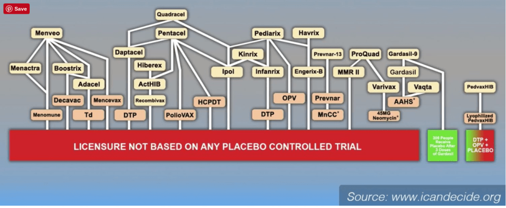 So proper safety testing is not done during clinical trials and once the vaccine is on the schedule, it conveniently becomes “unethical” to have a placebo group because withholding these miraculous products from a group of children would be consigning them to death and destruction, obviously. So in a cycle where the proper studies are never done, we enter a state I like to call “Settled Science” and this is how that is accomplished.